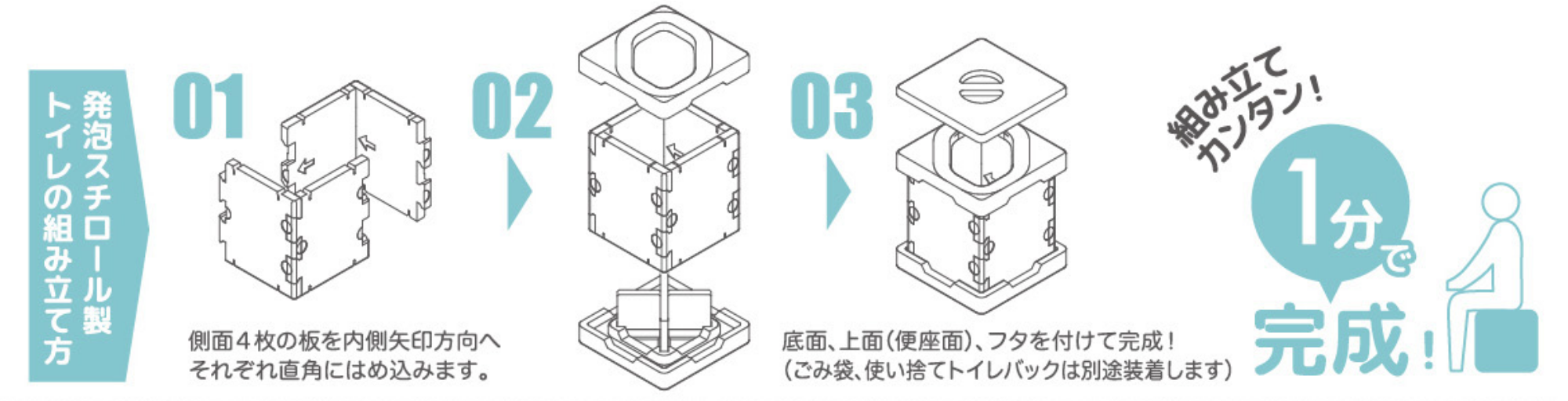 “もしも”に備える、発泡スチロール製 組立式トイレ