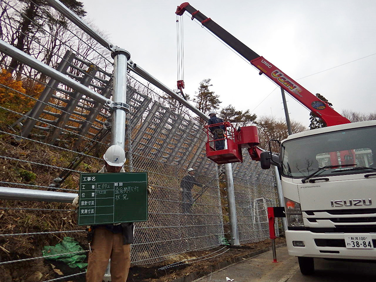 - 不安定な地盤でも設置可能な上部・基礎が一体構造となった鉛直型防護柵です
