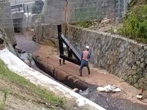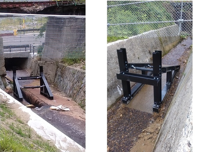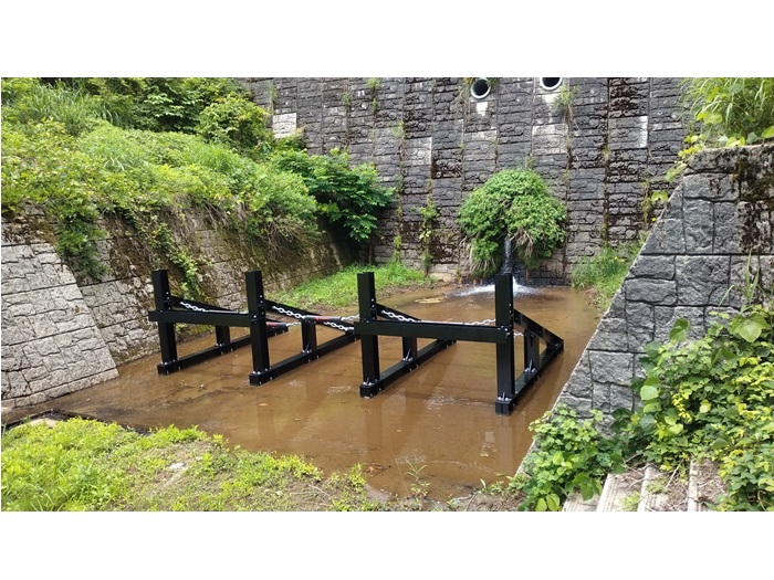 既設堰堤に補強不要で流木捕捉工が設置可能